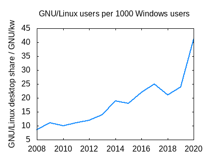 - 2008: 8.6 GNU/Linux Nutzer pro 1000 Windows Nutzer (GNU/kw)