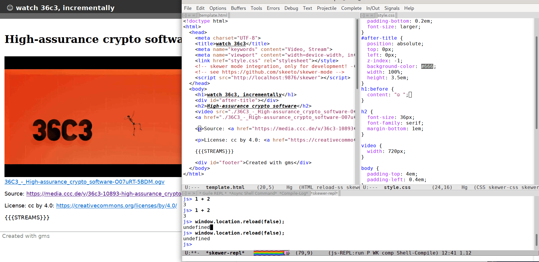 Setup is simple: Just run M-x run-skewer to launch the server and