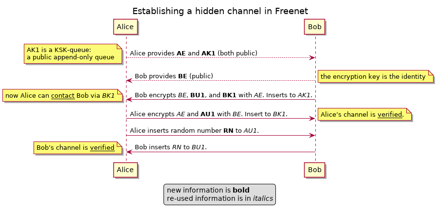 - Bob wants to establish a hidden channel with Alice which they can afterwards use for confidential communication.